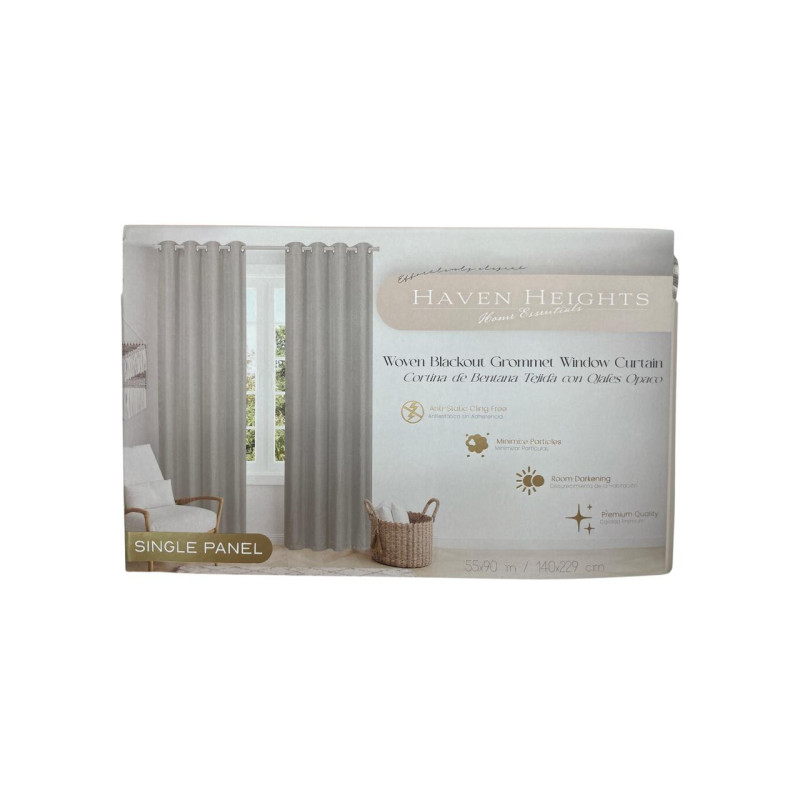 Cortina blackout de 55x90 pulgadas en tono linen, diseñada para reducir significativamente la entrada de luz, ayudar a regular la temperatura y aportar un estilo moderno y elegante. Sus grommets metálicos permiten una instalación sencilla y un deslizamiento suave.