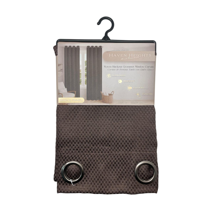 Cortina blackout 4Home en tono café, diseñada para dormitorios, salas u oficinas que requieren control de luz con una estética clásica y acogedora. Su color marrón combina fácilmente con muebles de madera y decoraciones neutras, mientras que los grommets metálicos facilitan una instalación rápida y un deslizamiento suave.