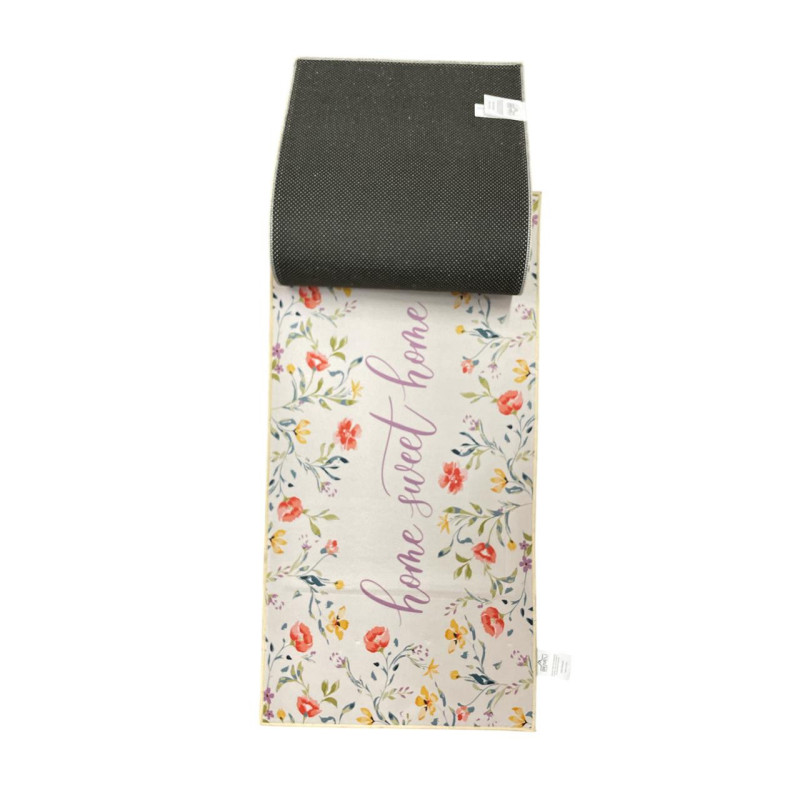 Set de alfombras para cocina compuesto por 2 piezas, pensado para zonas de alto uso como fregadero o estufa. Ayuda a reducir la fatiga al estar de pie, protege el piso contra salpicaduras y complementa la decoración con un diseño Sweet Home.