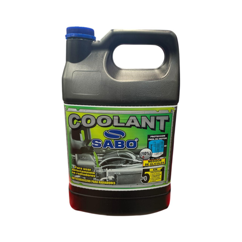 Coolant verde SABO 10% glicol en presentación de galón (3785 ml), ideal para proteger y mantener el sistema de enfriamiento del motor en óptimo estado.