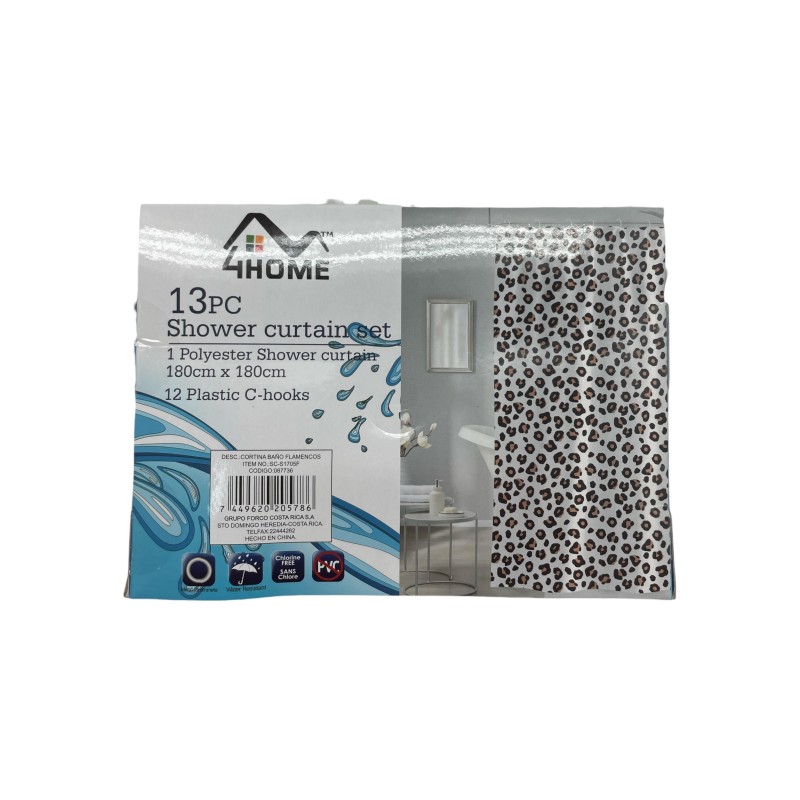 Cortina 4Home Baño Flamencos 13Pcs 180X108Cm (Sc-S1705F)