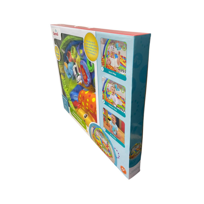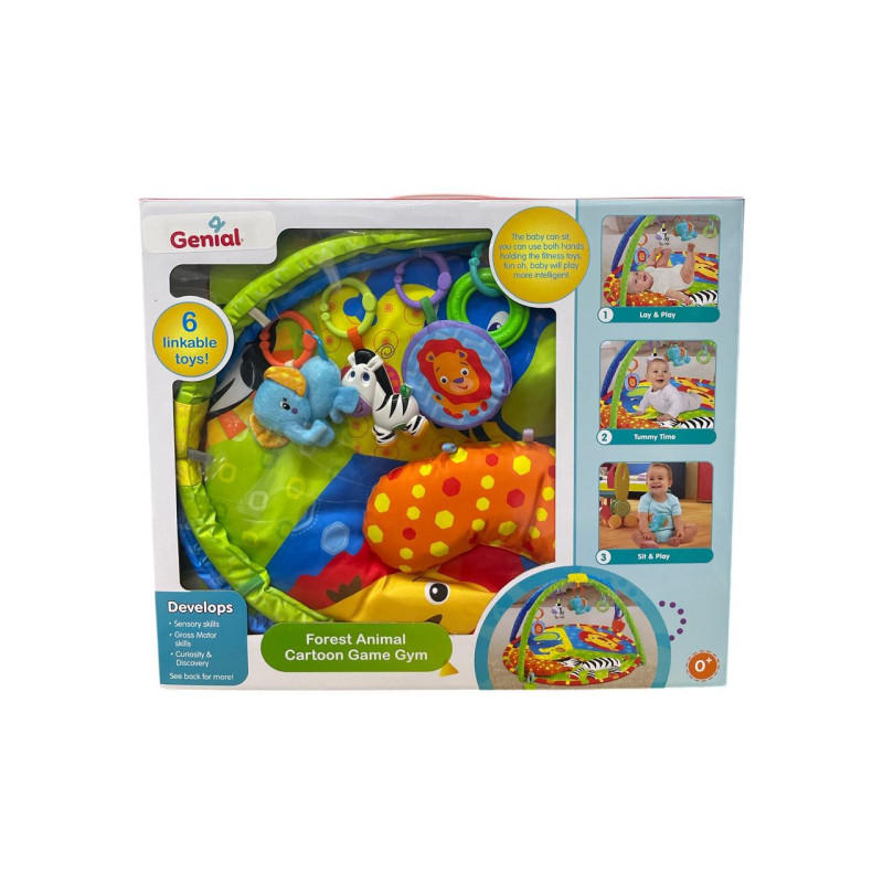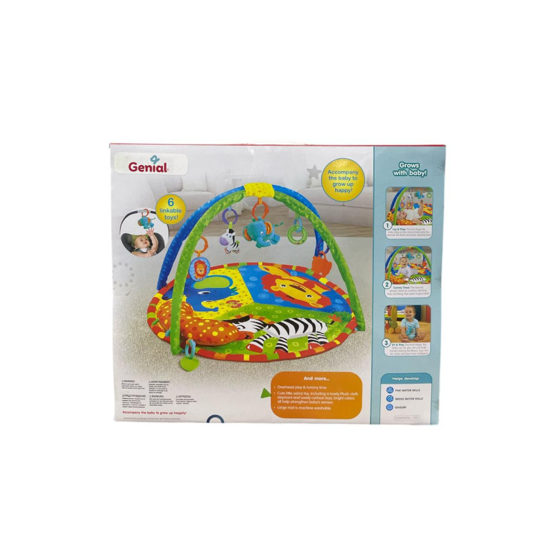El gimnasio para bebé GENIAL está diseñado para acompañar las primeras etapas del desarrollo del bebé, ofreciendo diversión, seguridad y estimulación sensorial. Incluye 4 juguetes colgantes de plástico, 1 juguete adicional y una suave almohada de apoyo para mantener al bebé cómodo durante el juego boca abajo o acostado. Los colores brillantes y las diferentes texturas estimulan la curiosidad, la vista y el tacto. Su estructura ligera y fácil de armar permite usarlo en cualquier habitación del hogar.