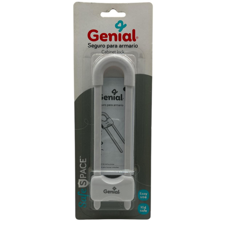 La cerradura para gabinete Genial es una solución práctica y segura para mantener los espacios del hogar protegidos de los más pequeños. Su diseño permite bloquear el acceso a puertas, cajones o gabinetes, evitando que los niños manipulen objetos peligrosos. Es fácil de instalar sin necesidad de herramientas, gracias a su cinta adhesiva de alta resistencia. Fabricada con materiales duraderos y seguros, se adapta a la mayoría de los muebles del hogar.