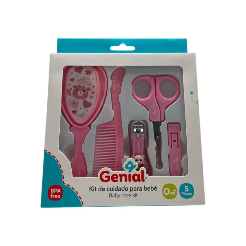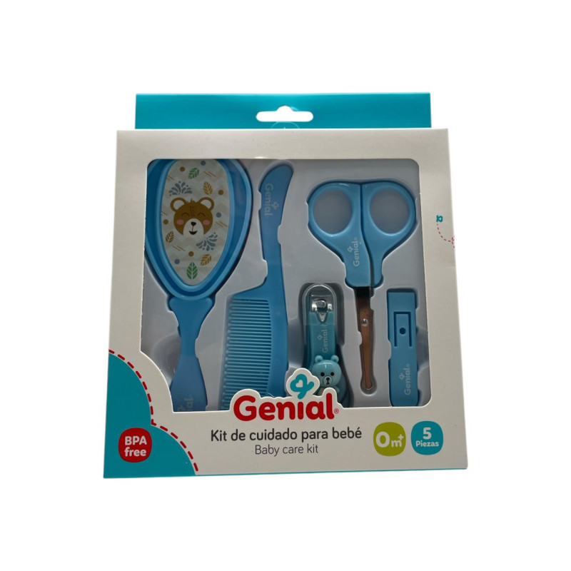 El Kit de Cuidados para Bebé GENIAL está diseñado para acompañar a los padres en la rutina diaria de higiene del bebé. Incluye accesorios básicos como cepillo, peine, cortaúñas, lima y aspirador nasal, elaborados con materiales suaves y seguros para pieles delicadas. Su estuche compacto permite mantener todo organizado y listo para usar tanto en casa como durante los viajes. Es ideal como regalo para recién nacidos o padres primerizos.