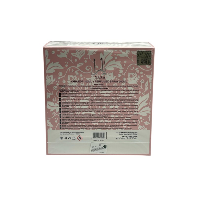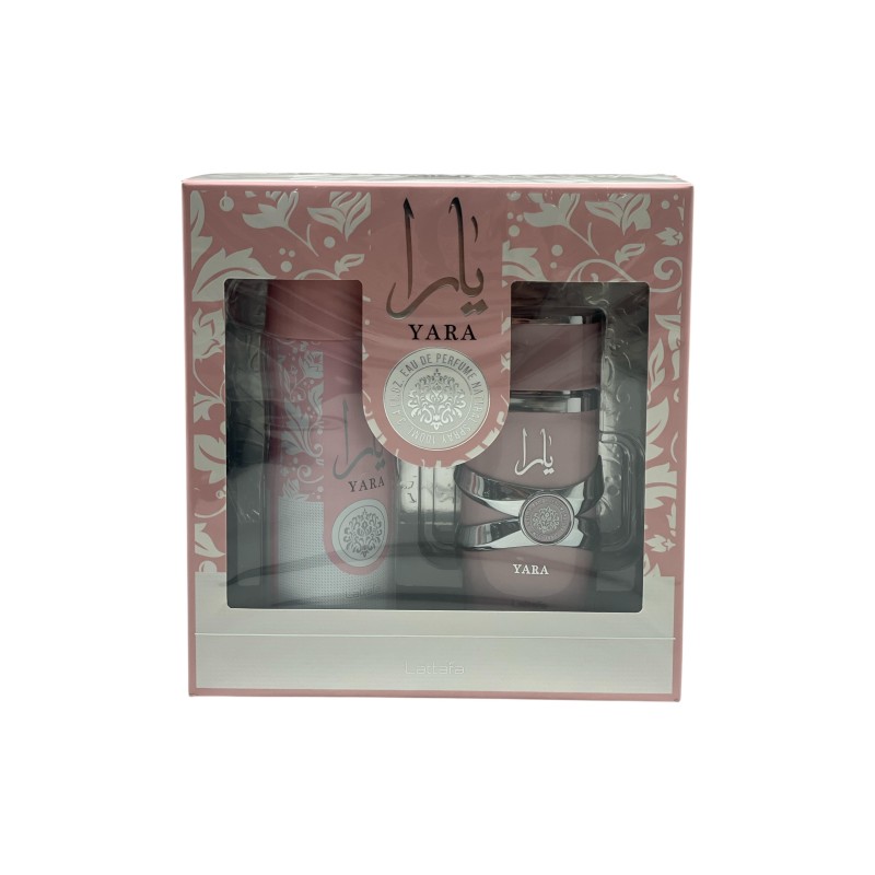 Descubrí el estuche Yara de Lattafa con perfume y spray corporal. Una fragancia femenina ideal para el día a día o como regalo especial.