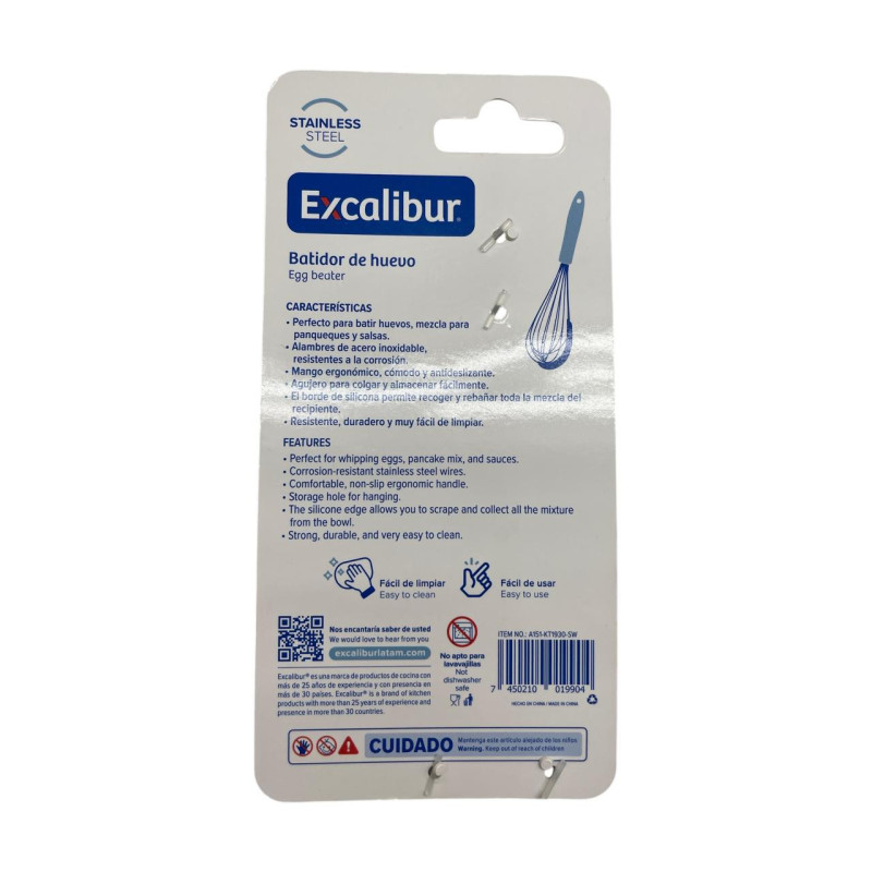La batidora de mano Excalibur es el aliado perfecto para quienes disfrutan cocinar en casa. Con un diseño ergonómico y liviano, permite batir, mezclar o triturar de manera eficiente. Su motor potente ofrece un rendimiento constante, ideal para preparar purés, cremas, salsas o postres en minutos. Incluye accesorios desmontables de acero inoxidable que facilitan la limpieza y garantizan durabilidad. Compacta y práctica para cualquier cocina moderna.