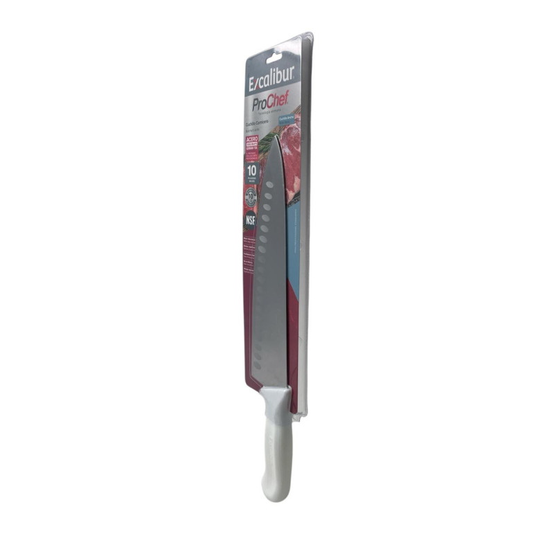 Cuchillo Excalibur de 10 pulgadas ideal para cortes amplios y precisos. Hoja de acero inoxidable y mango ergonómico antideslizante.