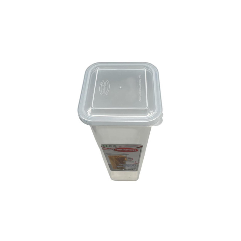 Recipiente para alimentos fabricado en plástico resistente, diseñado para el almacenamiento y transporte de comida en el hogar, oficina o actividades diarias. Su formato práctico ayuda a mantener los alimentos protegidos y organizados.