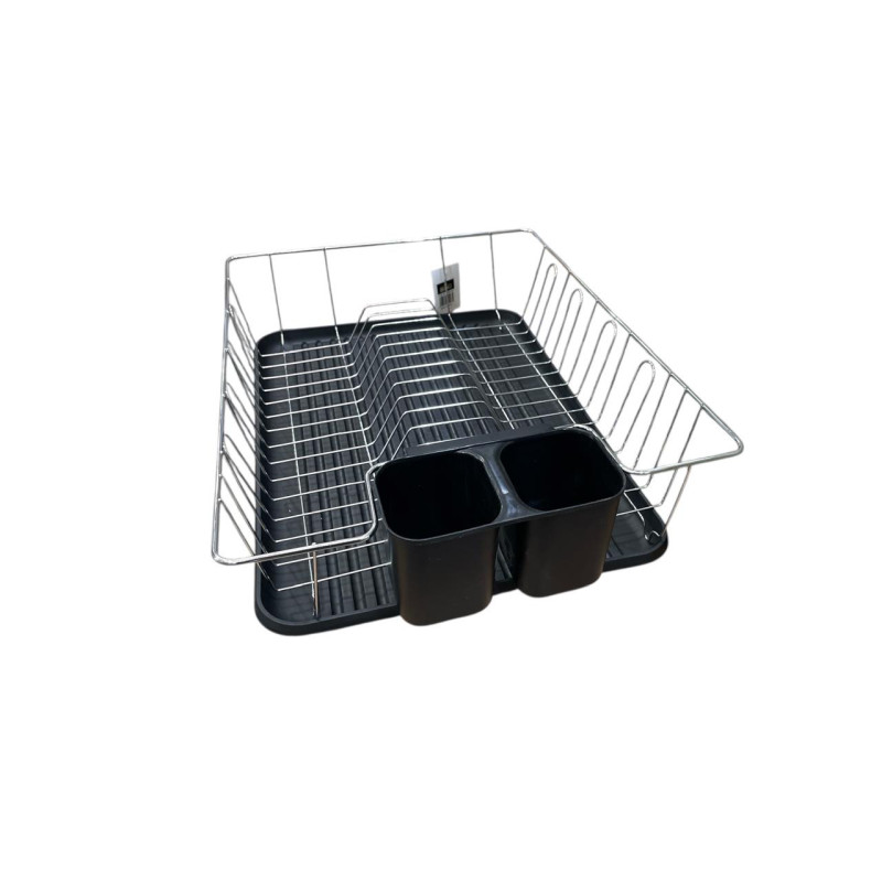Escurridor de platos de diseño compacto y funcional, fabricado en material resistente con acabado negro. Ideal para colocar platos, vasos y utensilios después del lavado, manteniendo la cocina limpia y organizada.