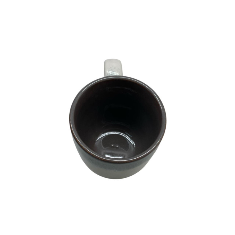 Taza de cerámica bicolor con acabado esmaltado, ideal para bebidas calientes o frías. Su diseño combina colores contrastantes que aportan estilo a tu mesa o escritorio.