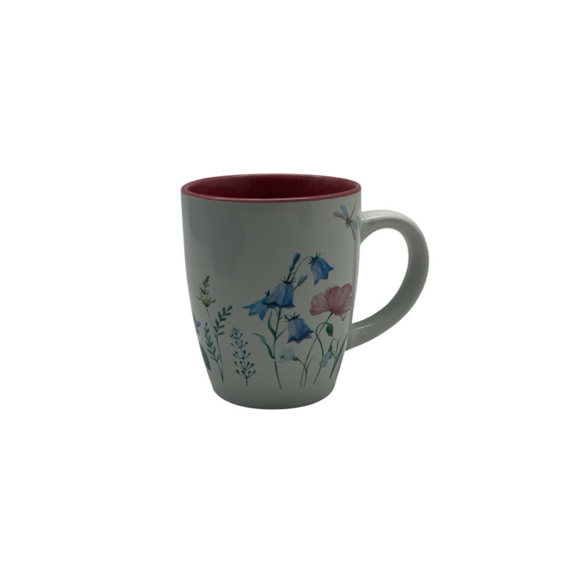 Taza de cerámica decorada, perfecta para el consumo diario de café, té o chocolate caliente. Su diseño aporta un toque decorativo a la mesa o cocina, combinando funcionalidad y estilo.