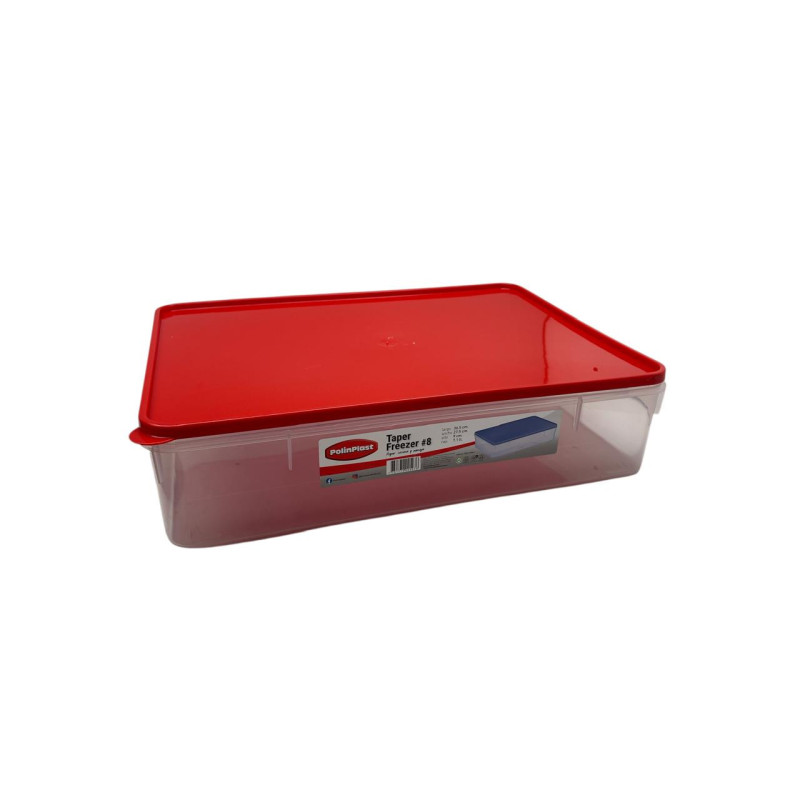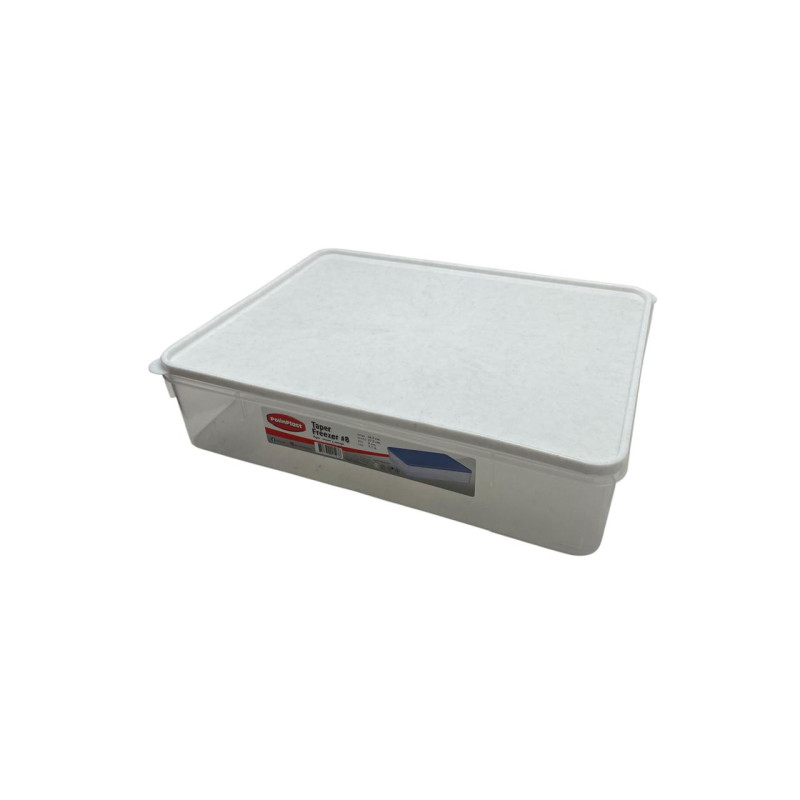Recipiente multiuso fabricado en plástico resistente, adecuado para almacenar alimentos secos, utensilios u otros artículos del hogar. Su diseño práctico permite mantener el orden y aprovechar mejor los espacios en cocina, lavandería o áreas comunes.