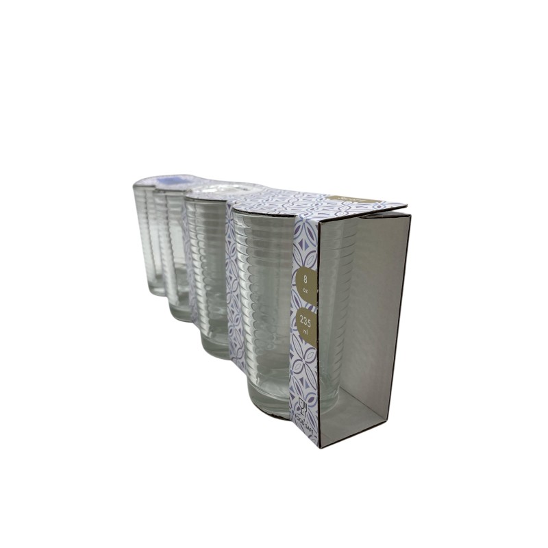 El set de vasos Life Art incluye 4 piezas de vidrio transparente con tamaño ideal para uso cotidiano. Perfectos para agua, jugos, refrescos o bebidas frías. Su diseño sencillo combina con cualquier mesa y resulta útil tanto para el hogar como para oficinas o reuniones familiares.