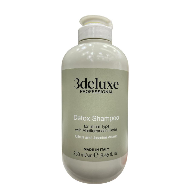 El Shampoo Detox 3Deluxe de 250ml está especialmente formulado para limpiar a profundidad el cuero cabelludo y el cabello. Su acción detox elimina restos de productos, exceso de grasa e impurezas ambientales, ayudando a mantener el cabello más saludable y con sensación de frescura. Ideal para uso regular en personas que buscan un cabello ligero, brillante y revitalizado.
