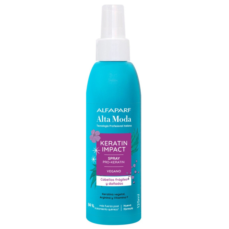 El Spray Alfaparf Alta Moda Keratin Impact 125ml es un tratamiento ligero y sin enjuague que brinda fuerza y vitalidad al cabello dañado o debilitado. Su fórmula enriquecida con keratina penetra en la fibra capilar para repararla desde el interior, reduciendo el quiebre y mejorando la resistencia. Ideal para uso diario, protege contra agresiones externas y facilita el peinado, dejando el cabello suave, brillante y manejable.