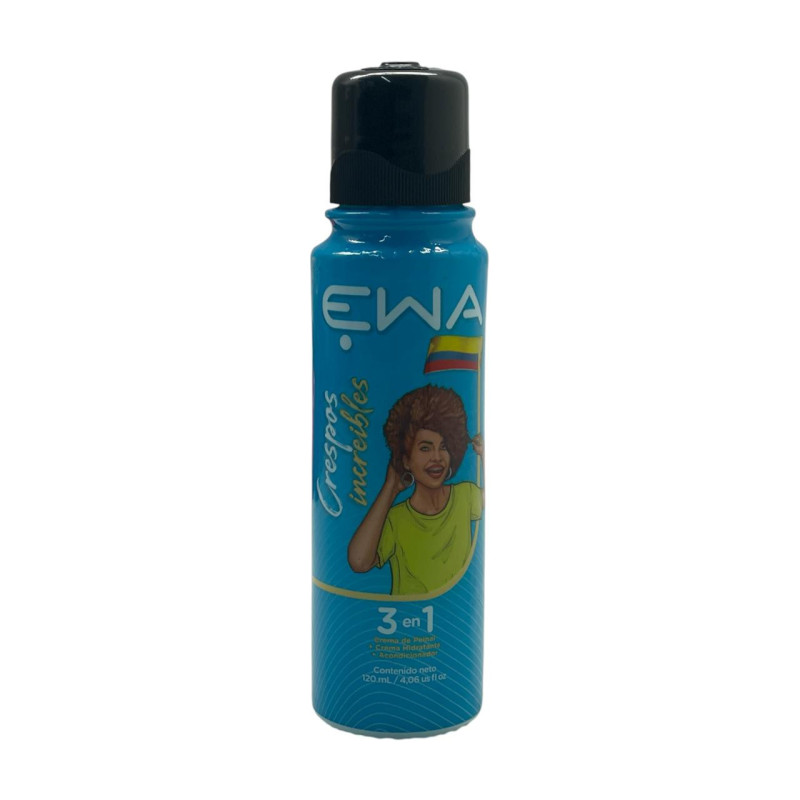 El Tratamiento EWA 3 en 1 Crespos Increíbles 120ml es ideal para el cuidado completo del cabello rizado. Su fórmula nutritiva hidrata intensamente, define cada rizo y controla el frizz, dejando el cabello suave y manejable. Funciona como crema de peinar, tratamiento sin enjuague o acondicionador, adaptándose a tus necesidades diarias para mantener rizos saludables y con movimiento natural.