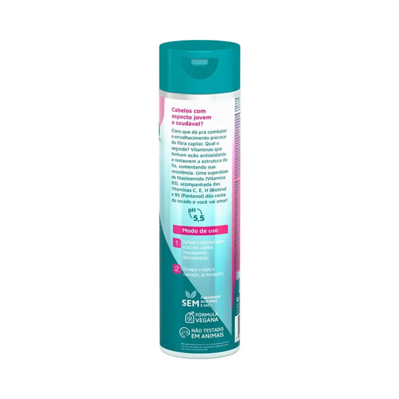 El shampoo Novex Niacinamida 300ml limpia suavemente el cuero cabelludo mientras fortalece la fibra capilar desde la raíz. Su fórmula enriquecida con niacinamida (vitamina B3) mejora la elasticidad del cabello, previene la caída y deja una sensación de frescura y suavidad. Ideal para todo tipo de cabello, aporta brillo, resistencia y un aspecto más saludable con cada lavado.