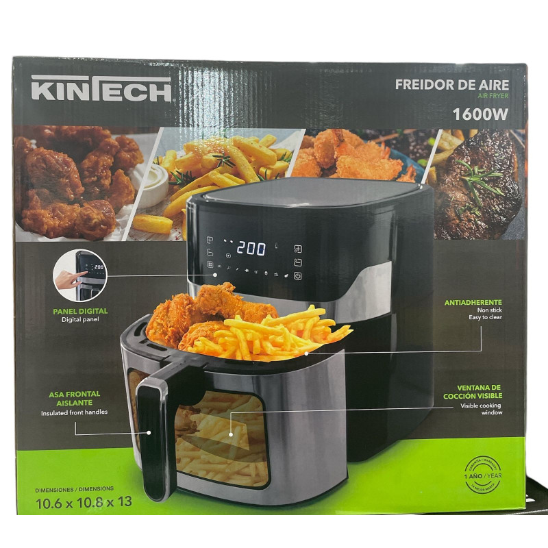 La freidora de aire Kintech de 6.5 litros permite cocinar para toda la familia sin preocuparse por el exceso de grasa. Su pantalla digital facilita la selección de programas de cocción automática para alimentos como papas, pollo y más. Diseño moderno y de alto rendimiento, ideal para hogares que buscan eficiencia y salud.