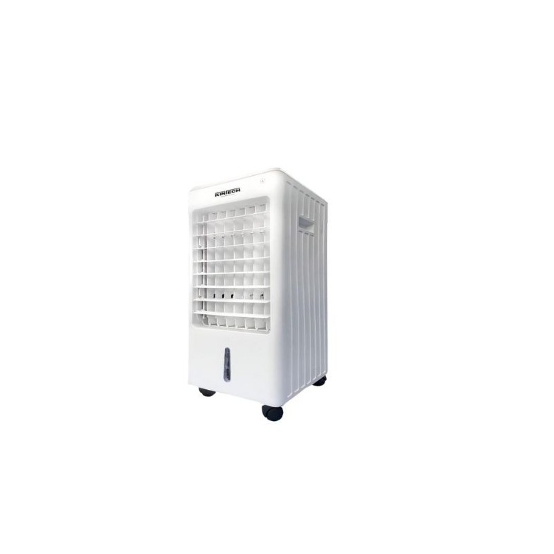 Enfriador de aire Kintech con tanque de 4 litros y control remoto. Ideal para refrescar habitaciones y espacios pequeños de forma práctica.