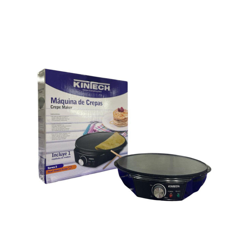 El sartén para crepas Kintech modelo A414-YX609 facilita la preparación de crepas, tortillas y panqueques. Cuenta con superficie antiadherente y calentamiento uniforme. Su diseño compacto y ligero lo hace ideal para cualquier cocina. Incluye herramienta para voltear y base eléctrica segura.
