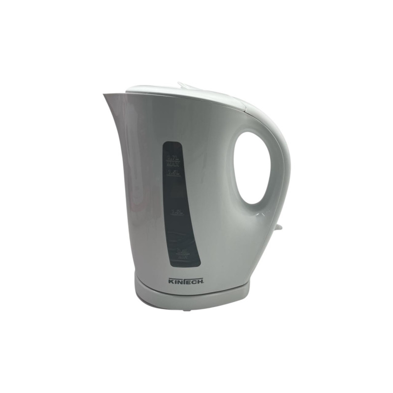 El hervidor Kintech A414-KET1100 tiene capacidad de 1.7 litros y es perfecto para preparar infusiones o calentar agua rápidamente. Cuenta con base giratoria 360°, sistema de seguridad y ventana para ver el nivel del agua.
