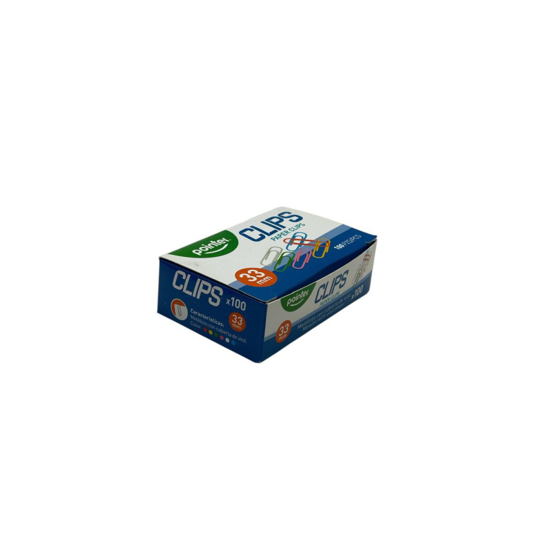 Clip metálico Pointer diseñado para sujetar hojas, documentos y papelería sin dañarlos. Ideal para uso escolar, oficina o estudio en casa.
