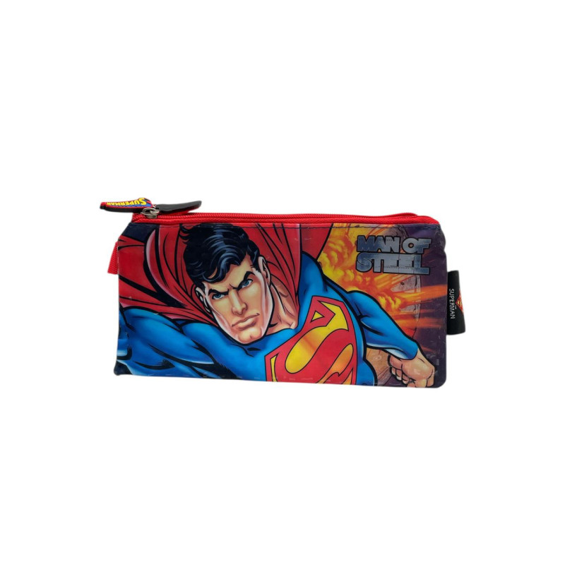Cartuchera escolar doble Superman Nickelodeon diseñada para niños. Cuenta con dos compartimentos con cierre para separar útiles, material resistente para uso diario y diseño llamativo de Superman que motiva a los niños.