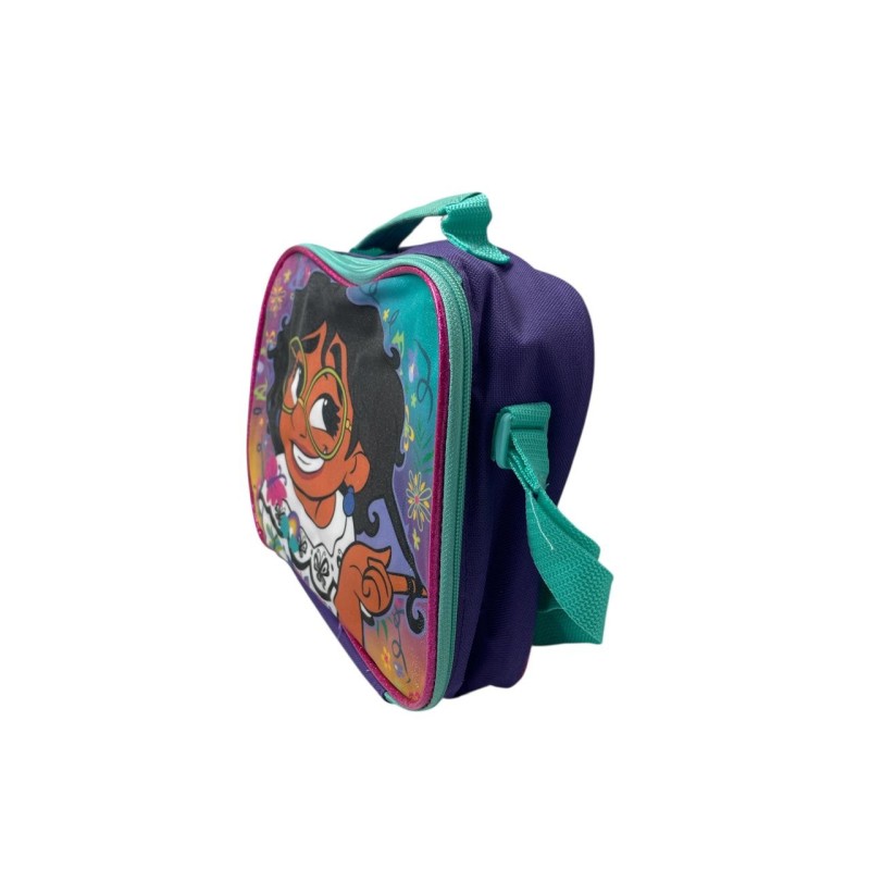 Lonchera infantil con diseño Encanto, pensada para uso escolar diario. Cuenta con un compartimento principal amplio para almacenar alimentos, snacks o recipientes pequeños. Es liviana, resistente y fácil de transportar.