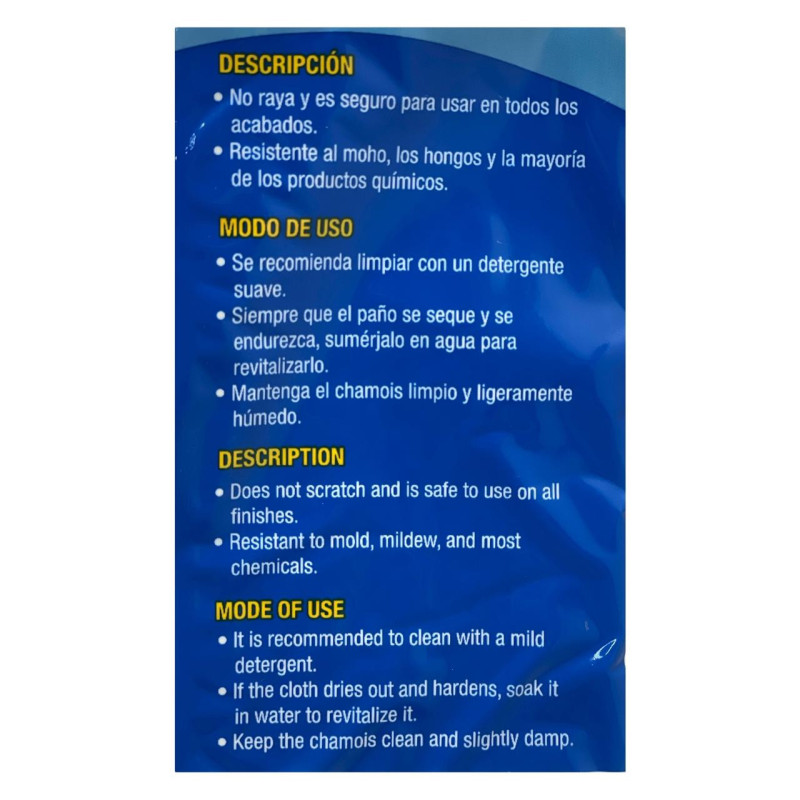 Absorbe gran cantidad de agua y seca sin rayar, ideal para mantener tu vehículo o superficies impecables.