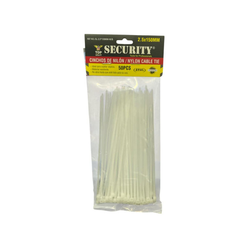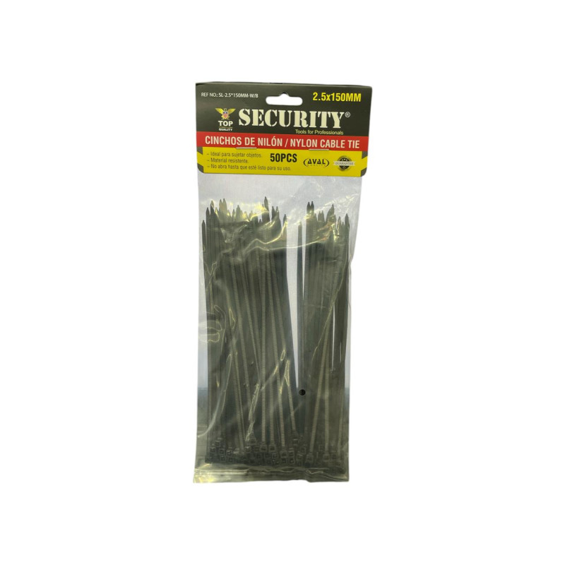 Los Cables para Amarrar Security 150mm son una herramienta esencial para mantener el orden y la seguridad en tus instalaciones. Fabricados en nylon de alta resistencia, ofrecen una sujeción firme y confiable que no se afloja con el tiempo. Su diseño con sistema de trinquete permite un ajuste rápido y seguro, adaptándose a distintos tamaños de objetos o agrupaciones de cables. Son ideales para trabajos eléctricos, automotrices, de jardinería o de organización en el hogar o la oficina.
