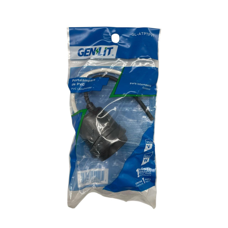 El Portabombillos Genlit para Exterior está diseñado para brindar una instalación segura y resistente en ambientes al aire libre. Su estructura de materiales plásticos reforzados soporta la exposición a la humedad y los cambios de temperatura, garantizando una larga vida útil. Es ideal para patios, cocheras, jardines o pasillos, brindando un soporte estable y compatible con la mayoría de bombillos convencionales. Su diseño sencillo facilita la instalación y asegura una conexión firme que protege los contactos eléctricos.