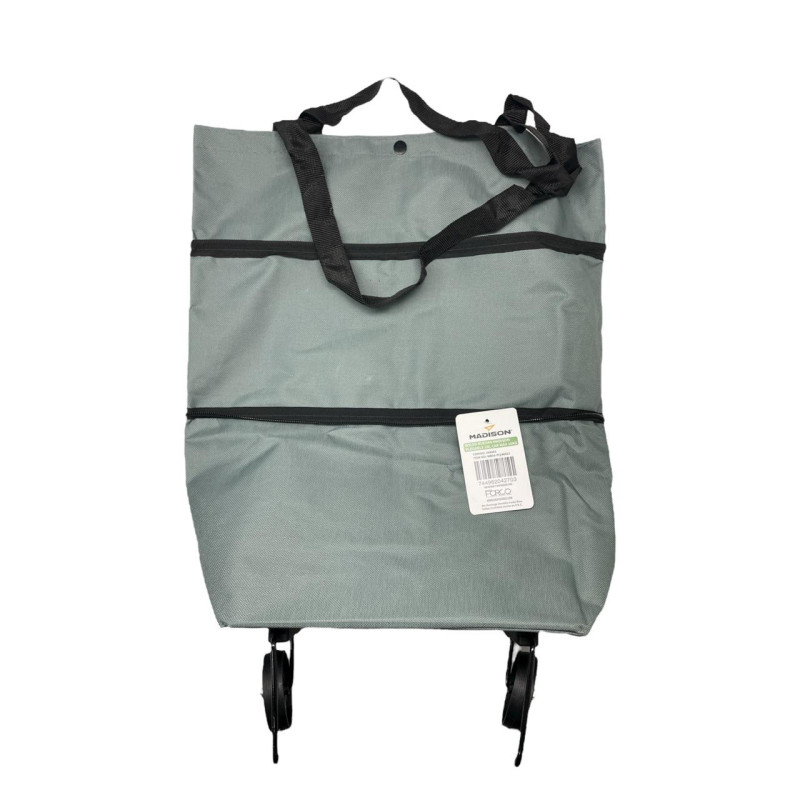 El bolso con ruedas Madison plegable de 20 litros es una solución práctica para transportar objetos de forma cómoda y sin esfuerzo. Su estructura ligera y resistente permite cargar hasta 10 kg, ideal para compras, herramientas o artículos personales. Cuenta con ruedas duraderas y un asa ergonómica que facilita el desplazamiento. Además, su diseño plegable permite guardarlo fácilmente cuando no se utiliza, ocupando un espacio mínimo.