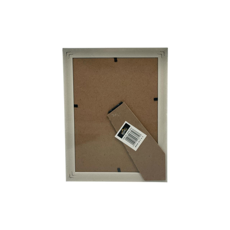Porta retrato de plástico diseñado para fotografías tamaño 5x7 pulgadas. Ideal para mesas, repisas o escritorios, aportando un toque decorativo sencillo y funcional en el hogar u oficina.