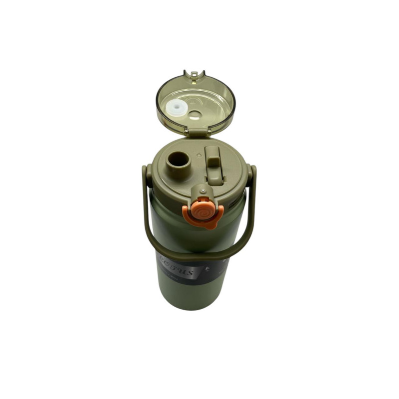 Termo metálico de 1200 ml ideal para agua, café o bebidas frías. Diseño resistente, reutilizable y fácil de transportar.