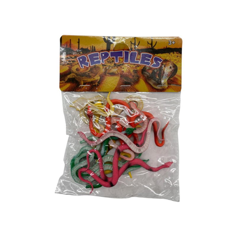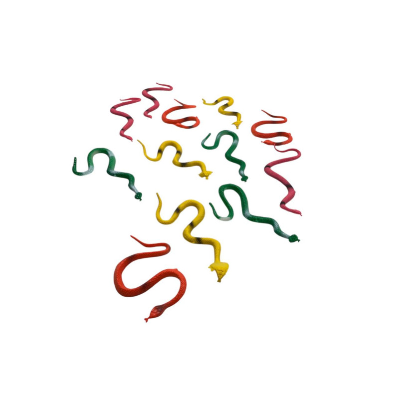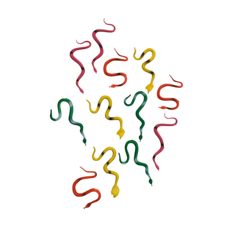 Incluye 12 culebras de juguete.