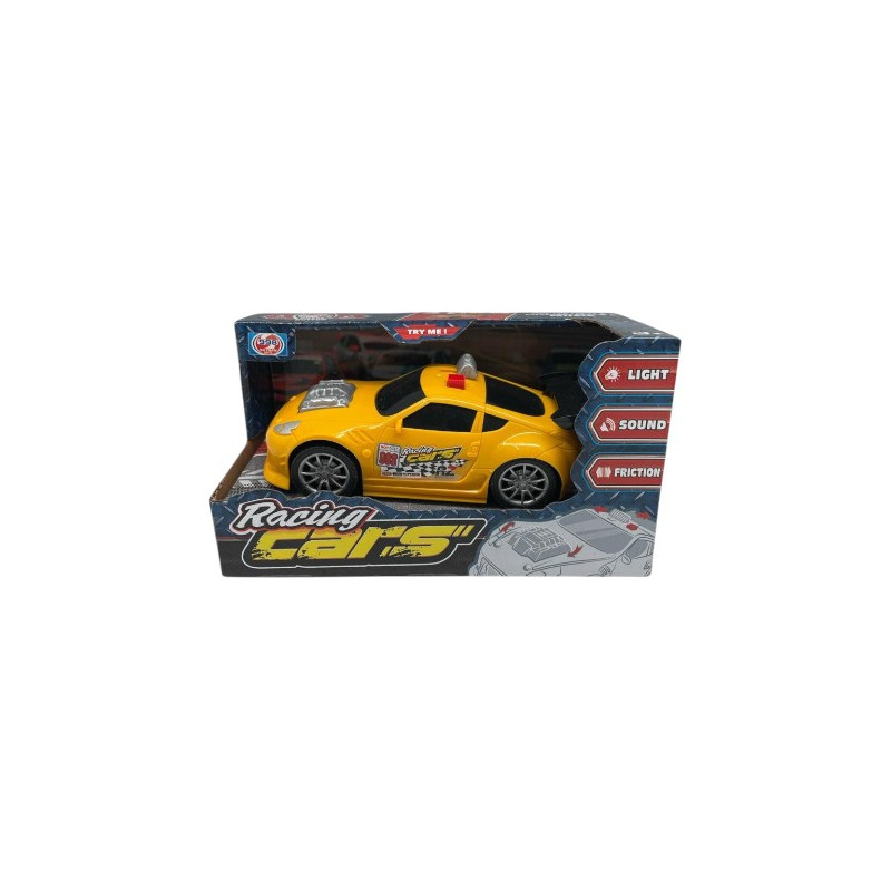 Carro de juguete tipo carreras con sistema de fricción que se impulsa al empujarlo, incorporando luces y música para una experiencia de juego más atractiva. Ideal para estimular la coordinación, el juego activo y la imaginación de los niños.