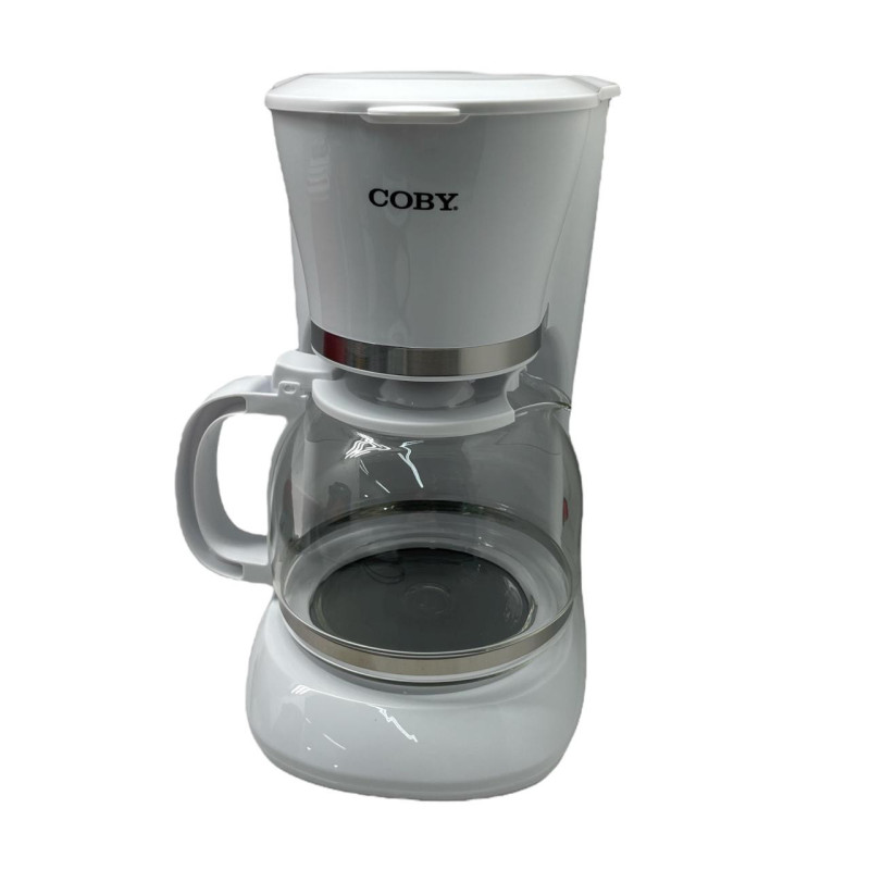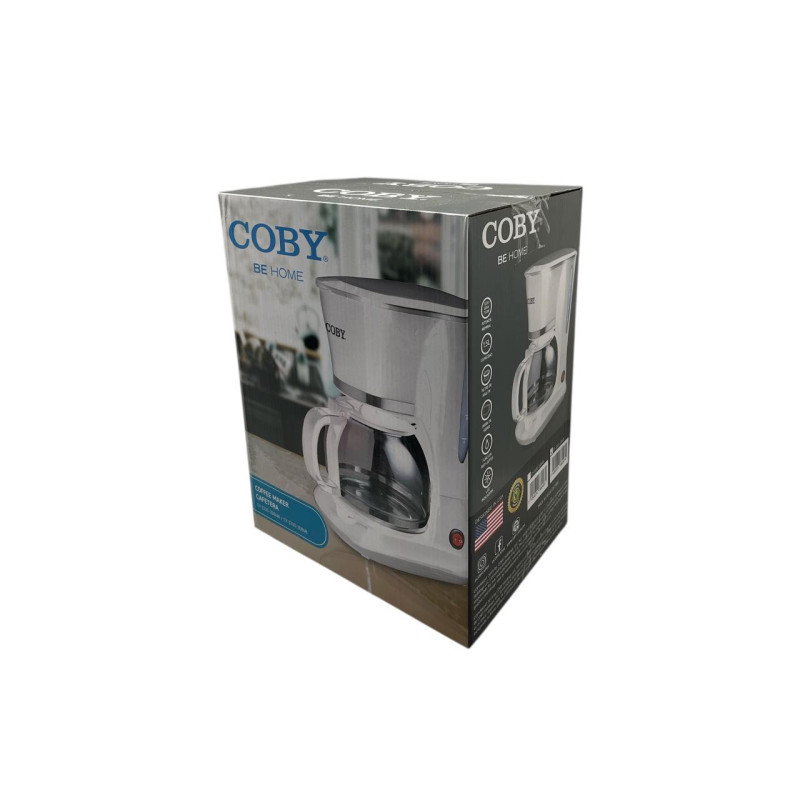 Cafetera eléctrica Coby de 12 tazas en color blanco, con diseño práctico y función de calentamiento. Ideal para uso diario en hogares y oficinas.