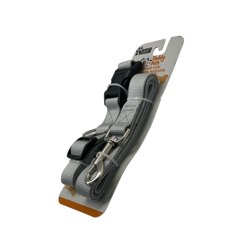 Set Correa Collar Teddy Pet Gris Talla L (8702W-L)