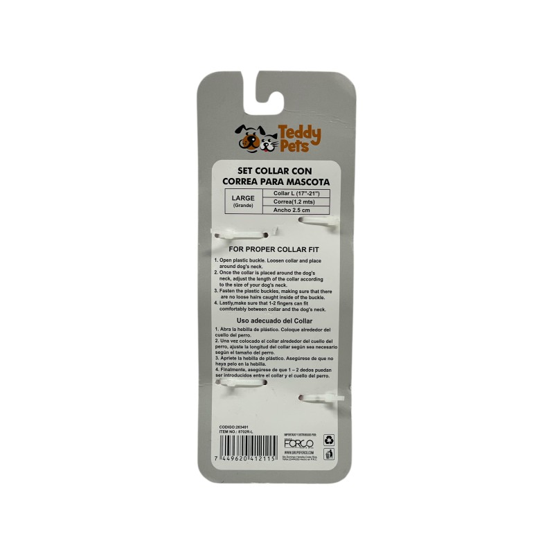 Set Correa Collar Teddy Pet Roja Talla L (8702R-L)