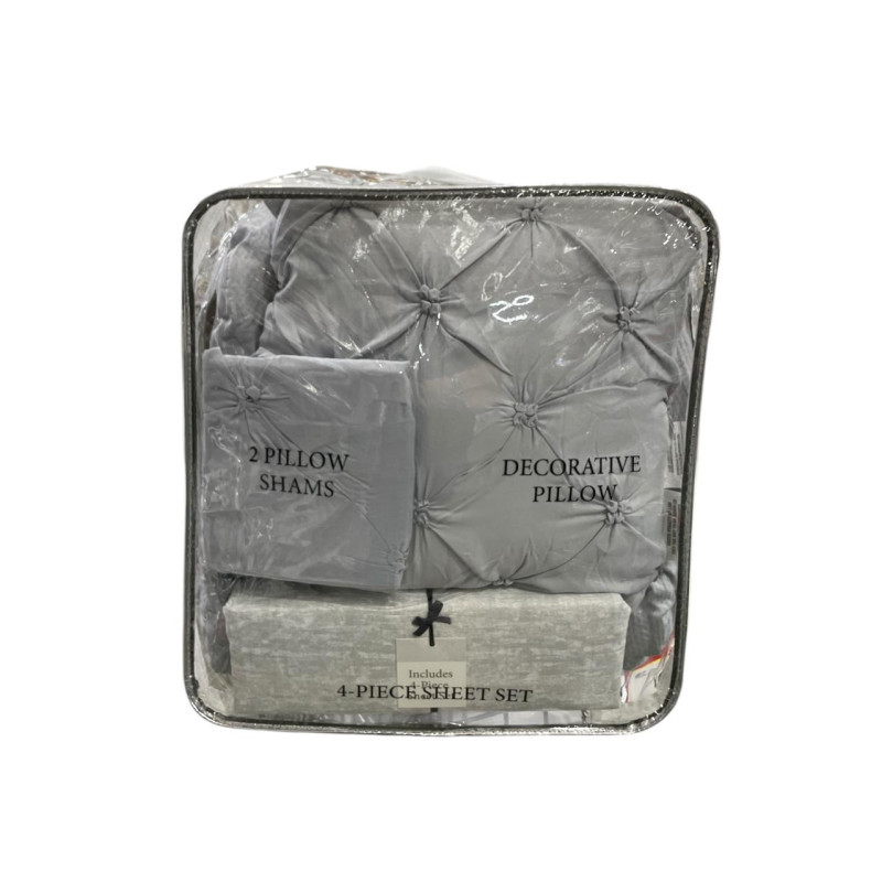 Incluye 1 edredón, 2 fundas decorativas, 2 fundas de almohada, 1 sábana ajustable, 1 sábana plana, 3 cojines decorativos.
