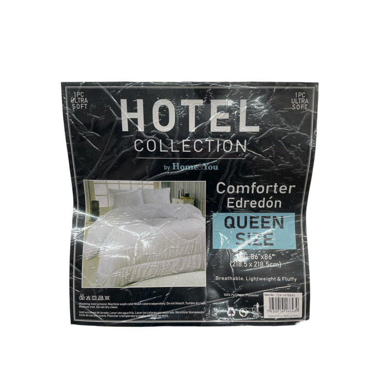 Edredón tipo comforter diseñado para camas Queen. Su relleno liviano brinda abrigo sin exceso de calor, ideal para uso diario en climas templados. Fabricado con materiales suaves al tacto que mejoran la experiencia de descanso.