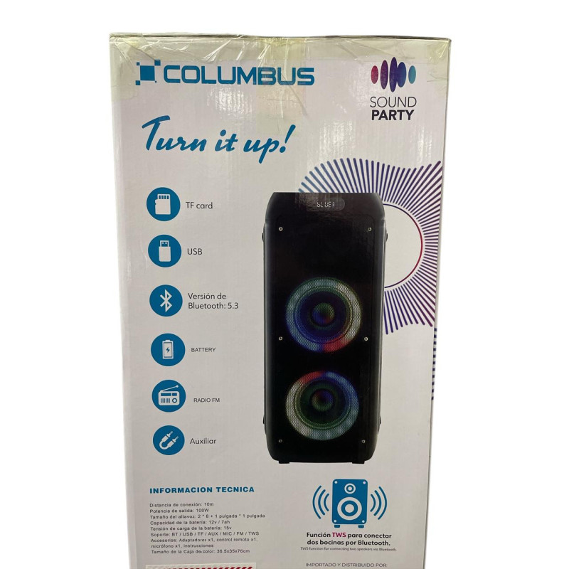 Este parlante Bluetooth Columbus modelo HX-HY82 ofrece un audio claro y equilibrado, con diseño portátil para llevarlo a cualquier espacio. Su conectividad inalámbrica facilita la reproducción desde teléfonos, tablets o computadoras, y su estructura resistente permite un uso diario sin complicaciones.