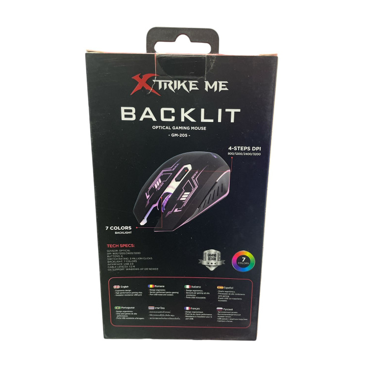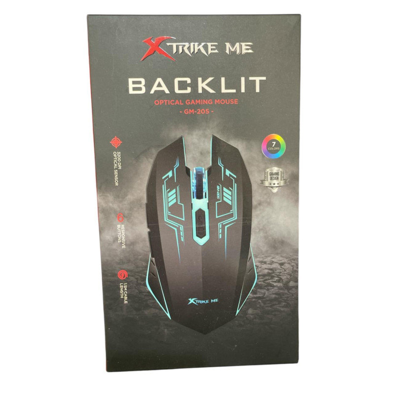 El mouse óptico XTRIKE ME modelo GM-205 está diseñado para jugadores que requieren precisión y respuesta rápida. Cuenta con sensor óptico ajustable hasta 3200 DPI, iluminación LED multicolor y 6 botones configurables. Diseño ergonómico con cable USB trenzado para mayor durabilidad.
