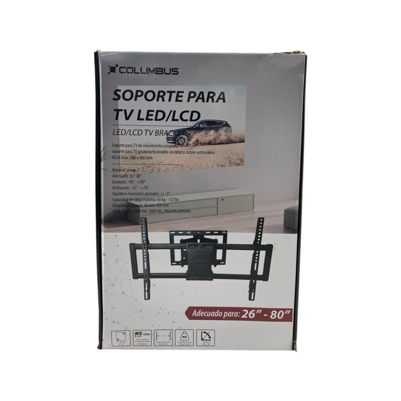 El soporte de pared Columbus YN-808LT está diseñado para pantallas planas de 26 a 80 pulgadas, ofreciendo máxima estabilidad y versatilidad. Su brazo articulado permite girar, inclinar y extender la pantalla para lograr el ángulo de visión ideal desde cualquier punto de la habitación. Fabricado en acero de alta resistencia, soporta televisores de gran tamaño sin comprometer la seguridad. Ideal para salas, habitaciones u oficinas, este soporte combina funcionalidad con un diseño discreto que optimiza el espacio y mejora la experiencia visual.