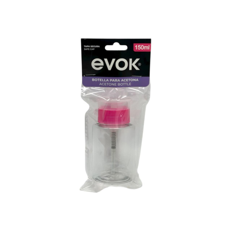 La botella plástica de 120 ml de Evok es un accesorio esencial para quienes trabajan con acetona de manera frecuente. Su tamaño compacto y diseño práctico permiten un manejo cómodo, evitando derrames y facilitando la aplicación durante procesos de remoción de esmalte, uñas acrílicas o limpieza de herramientas. Fabricada en material resistente, es ideal tanto para salones profesionales como para uso personal.