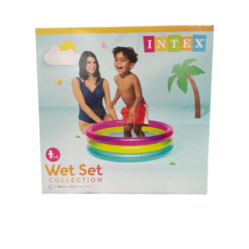 Piscina inflable diseñada especialmente para bebés, con paredes suaves y tamaño compacto que facilita su uso en patios, terrazas o interiores. Ideal para introducir al bebé al juego con agua de forma controlada.