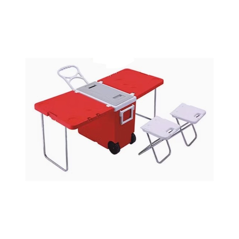 La hielera EVEREST A414-NR-6552 combina almacenamiento térmico con funcionalidad al integrar una mesa plegable y dos sillas. Su diseño compacto y resistente es ideal para días de campo, playa o actividades al aire libre. Fácil de transportar y almacenar.