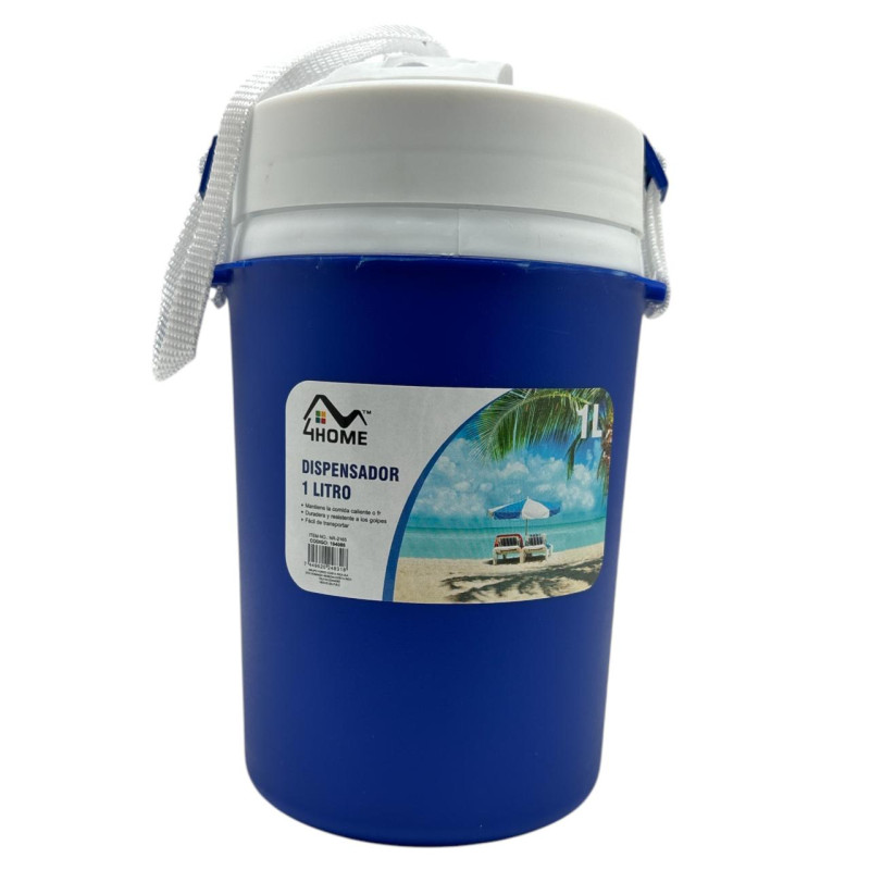 Mantén tus bebidas frías con el dispensador 4Home de 1L NR-2165. Compacto, práctico y resistente, ideal para uso diario en casa o reuniones.